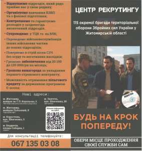 - 115 окрема бригада територіальної оборони запрошує на військову службу за контрактом!