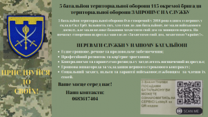 - 5 батальйон 115 окремої бригади територіальної оборони запрошує на військову службу за контрактом