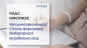 <p>Національне агентство з питань державної служби (НАДС) розробило <a href="https://nads.gov.ua/npas/pro-zatverdzhennia-metodychnykh-rekomendatsii-z-pytan-formuvannia-bezbariernosti-na-robochomu-mistsi-v-derzhavnykh-orhanakh">методичні рекомендації</a>, спрямовані на створення безперешкодного середовища в державних органах. Мета цих рекомендацій – забезпечити рівні можливості для всіх працівників у належному виконанні встановлених завдань і обов’язків, а також сприяти їхньому професійному та особистісному розвитку і кар’єрному росту.</p>