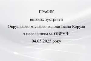 - ГРАФІК Виїзних зустрічей Овруцького міського голови Івана Коруда з населенням м. ОВРУЧ - 04.05.2025 року