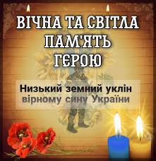 <p style="margin-bottom:13px"><em><span style="font-size:11pt"><span style="line-height:115%"><span style="font-family:Calibri,"sans-serif""><span style="font-size:14.0pt"><span style="background:white"><span style="line-height:115%"><span style="font-family:"Times New Roman","serif""><span style="color:black">Світла пам’ять та довічна наша шана</span></span></span></span></span><span lang="UK" style="font-size:14.0pt"><span style="background:white"><span style="line-height:115%"><span style="font-family:"Times New Roman","serif""><span style="color:black"> Герою</span></span></span></span></span><span style="font-size:14.0pt"><span style="background:white"><span style="line-height:115%"><span style="font-family:"Times New Roman","serif""><span style="color:black">!</span></span></span></span></span> </span></span></span></em></p>