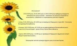 - Оголошення про відкриття меморіальних дощок воїнам-землякам, які загинули в боротьбі за незалежність, суверенітет і територіальну цілісність України