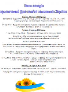 - План заходів по Овруцькій громаді присвячений Дню пам’яті захисників України