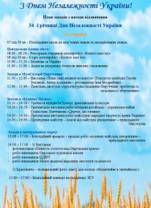 План заходів з нагоди відзначення 34-ї річниці Дня Незалежності України