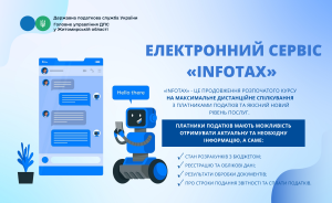 <p style="margin-bottom:8px; text-align:justify; text-indent:35.45pt"><span style="font-size:12pt"><span style="background:white"><span style="tab-stops:540.0pt"><span style="font-family:"Times New Roman",serif"><span style="font-size:14.0pt"><span style="color:black">Наступним за популярністю іде сервіс<b> «InfoTAX» - </b>це продовження розпочатого курсу на максимальне дистанційне спілкування з платниками податків та якісний новий рівень послуг та комфортність спілкування з податковою службою.</span></span></span></span></span></span></p>
