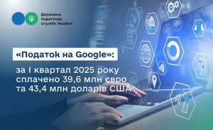 - «Податок на Google»: за І квартал 2025 року сплачено 39,6 млн євро та 43,4 млн доларів США