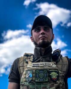 - учасником бойових дій на Сході України, зокрема оборона м. Бахмут;<br />