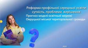 - Реформа профільної середньої освіти: сутність, проблеми, вирішення. Прогноз моделі освітньої мережі Овруцької міської територіальної громади