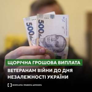 - Щорічна грошова виплата ветеранам війни до Дня Незалежності України: куди звертатися