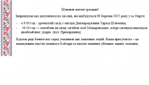 - Увага! Запрошуємо на заходи!