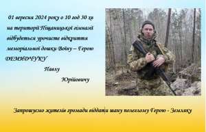 - Відкриття меморіальної дошки Герою - Демидчуку Павлу Юрійовичу