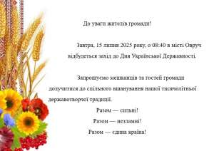 - Запрошуємо на урочисті заходи з нагоди Дня Української Державності