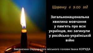 <p style="margin-bottom:11px"><span style="font-size:12pt"><span style="line-height:115%"><span style="font-family:Calibri,sans-serif"><span lang="UK" style="font-size:14.0pt"><span style="line-height:115%"><span style="font-family:"Times New Roman",serif">Пам’ятаймо: загальнонаціональна хвилина мовчання – це данина пам’яті кожному Герою, який заплатив ціною власного життя за наші життя.</span></span></span></span></span></span></p>